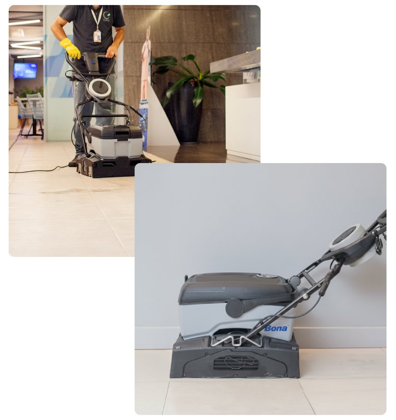 • PVC / LVT: técnicas de fricção controlada e enxágue inteligente.